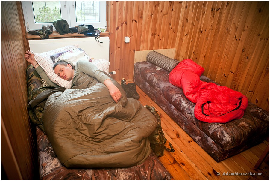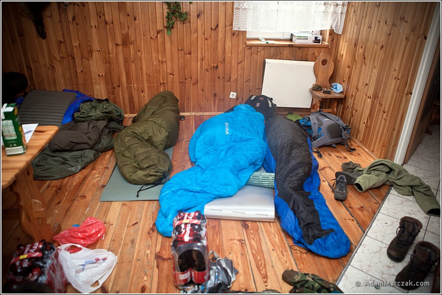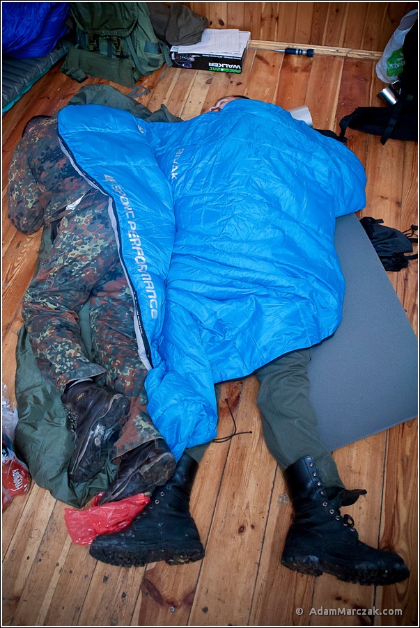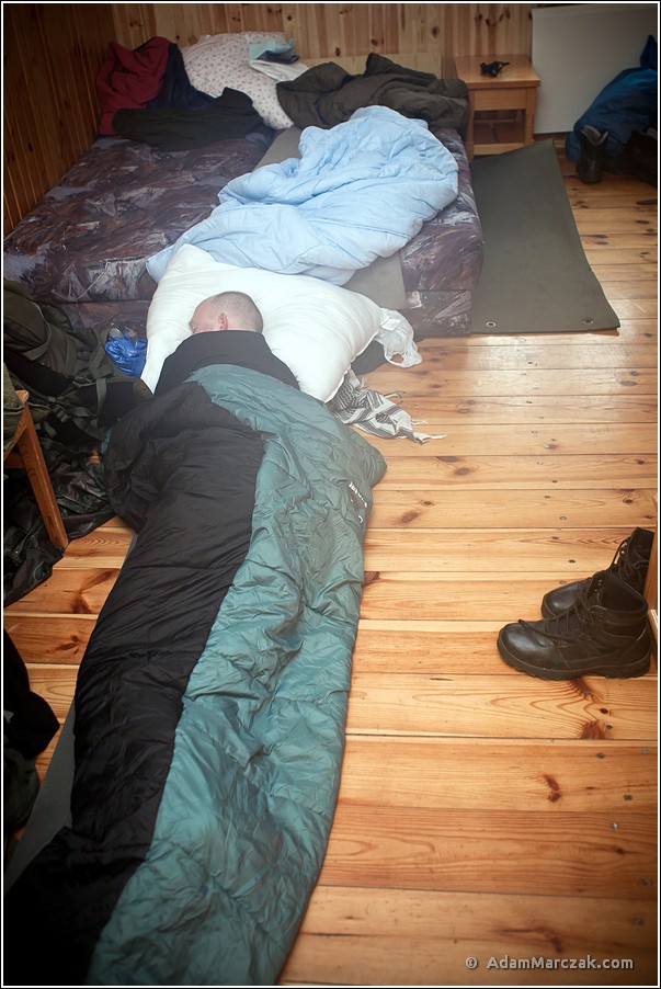 Łóżek nie wystarczyło dla wszystkich, część gości wykorzystała więc drogi parkiet z egzotycznego drewna.