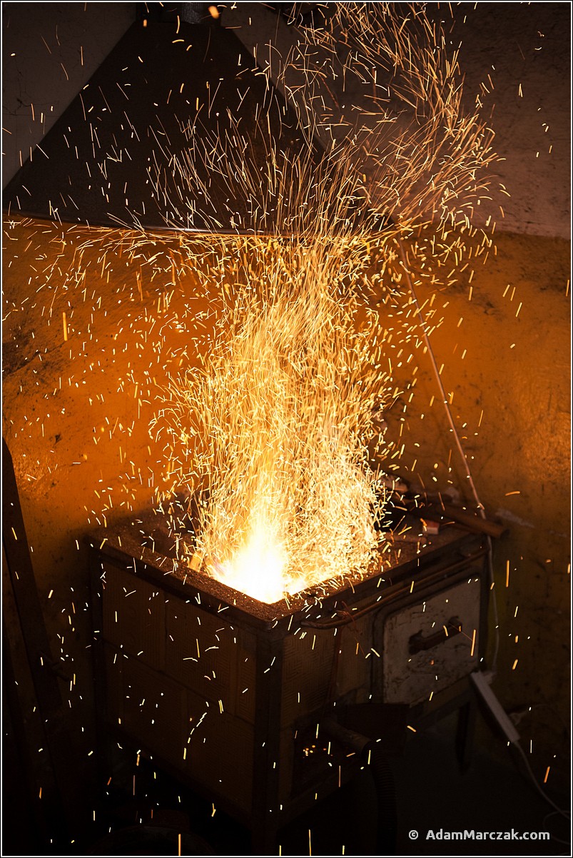 W Mławie jak to w Mławie – najlepiej przy kawie. No ale ile można bajerować, jak tam piec zimny stoi samotnie?? Po rozpakowaniu się więc, wypiciu kawuni i godzinnym bajerzeniu o pierdoletach udaliśmy się z kolegą do pomieszczenia zaadaptowanego na kuźnię, gdzie ja miałem proszę państwa aparat Zorkę Pięć.