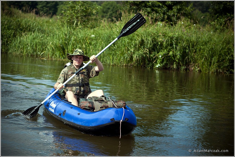 Ze względu na niższe prędkości przelotowe swojego dmuchańca Sevylor Dawid vel. Predator wyruszył w trasę pierwszy tak około 45 minut przed naszym startem. Spakowani jeszcze się trochę pobyczyliśmy i dopiero naprawdę wypoczęci wsiedliśmy do naszych bolidów i powiosłowaliśmy z biegiem Pisy.