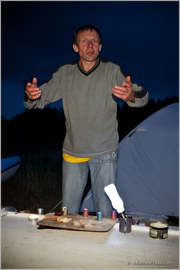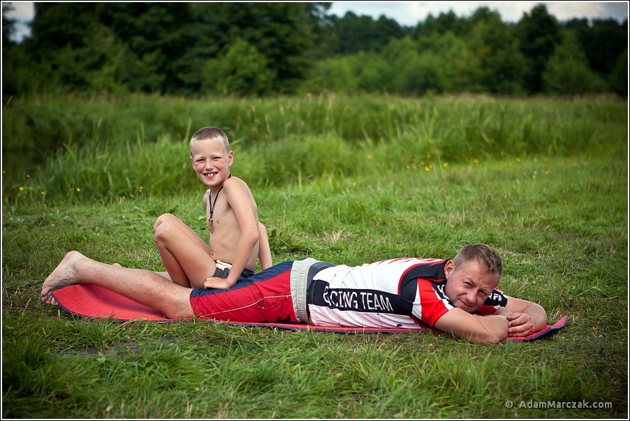 Oprócz nas na miejsce dotarli Dominik vel Ohar oraz Cyprian z ośmioletnim synem Patrykiem. Żony ich przywiozły na miejsce. Zostawiły i pozwoliły płynąć. Od razu pomyślałem, że ich nie kochają. :D